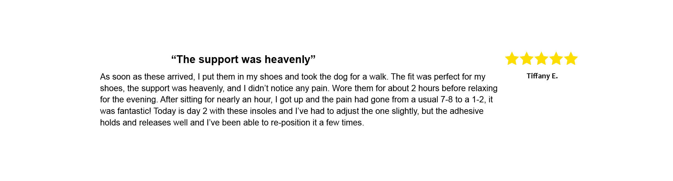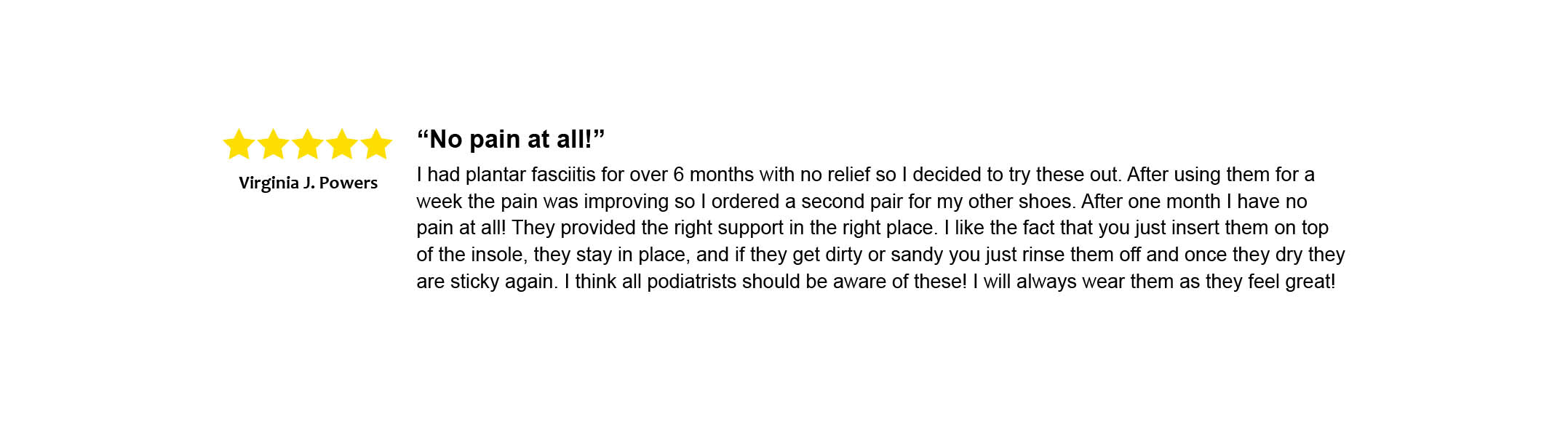 Podiatrist Dr. Karen Anderson raves, “These are so well made, Soul Insoles gel support is great for arch pain and even pain stemming from the top of the foot”.