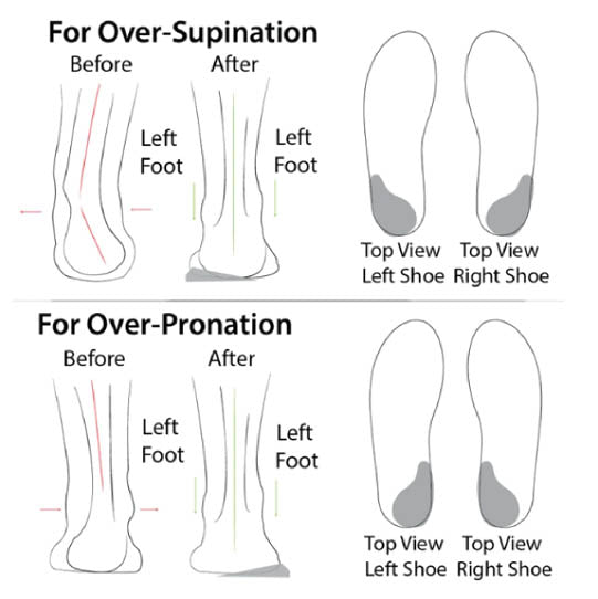 Wearing Down the Outer Heel Edges of the shoes is a clear sign of excessive supination and a key reason to use Soul Insole Heel Wedges. These wedges help your shoes last longer. You can combine heel wedges with a Shoe Bubble Orthotic if you are additionally in need of support for your arches.