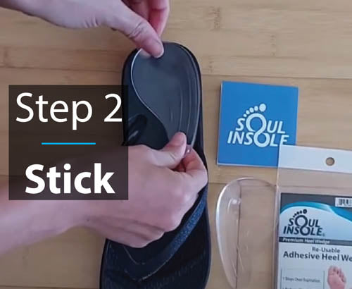 To attach these heel wedges to the underside of a shoe liner, simply pull out the liner, flip the wedges upside down and stick them to the liner. Just make sure the thick edge is still on the outer edge for supinators or inner edge for over pronators.